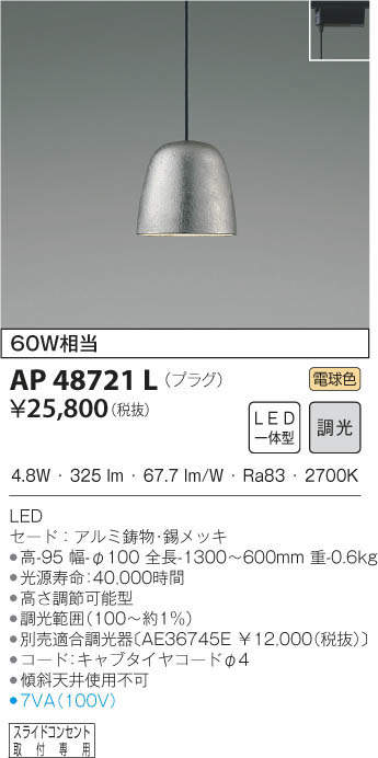 KOIZUMI ¥³¥¤¥º¥ß¾ÈÌÀ ¥Ú¥ó¥À¥ó¥È AP48721L