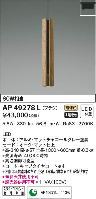KOIZUMI ¥³¥¤¥º¥ß¾ÈÌÀ ¥Ú¥ó¥À¥ó¥È AP49278L