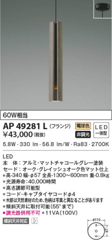 KOIZUMI ¥³¥¤¥º¥ß¾ÈÌÀ ¥Ú¥ó¥À¥ó¥È AP49281L