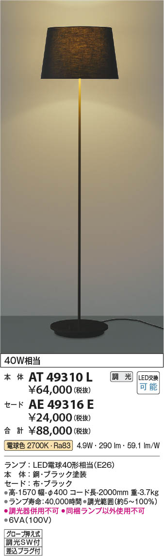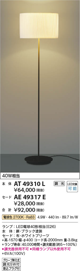 Koizumi ¥³¥¤¥º¥ß¾ÈÌÀ LED¥¹¥¿¥ó¥É ËÜÂÎ AT49310L