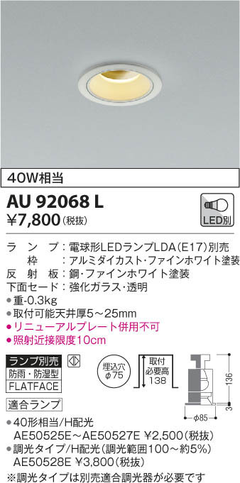 KOIZUMI ¥³¥¤¥º¥ß¾ÈÌÀ Ëɱ«Ëɼ¾·¿£Í·Á¥À¥¦¥ó¥é¥¤¥È AU92068L