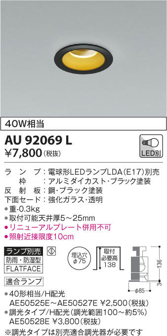 KOIZUMI ¥³¥¤¥º¥ß¾ÈÌÀ Ëɱ«Ëɼ¾·¿£Í·Á¥À¥¦¥ó¥é¥¤¥È AU92069L