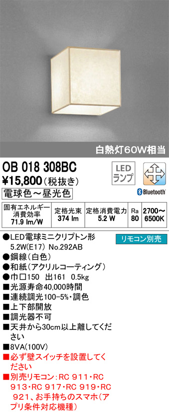 ODELIC ¥ª¡¼¥Ç¥ê¥Ã¥¯ ¥Ö¥é¥±¥Ã¥È OB018308BC