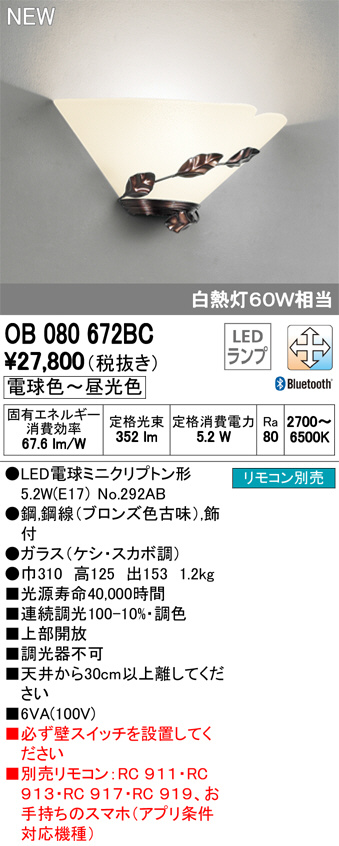 ODELIC ¥ª¡¼¥Ç¥ê¥Ã¥¯ ¥Ö¥é¥±¥Ã¥È OB080672BC
