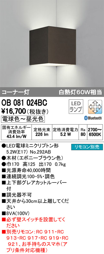 ODELIC ¥ª¡¼¥Ç¥ê¥Ã¥¯ ¥Ö¥é¥±¥Ã¥È OB081024BC