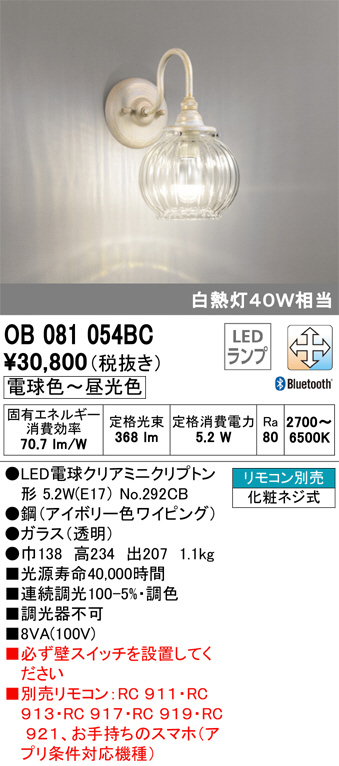 ODELIC ¥ª¡¼¥Ç¥ê¥Ã¥¯ ¥Ö¥é¥±¥Ã¥È OB081054BC