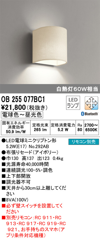 ODELIC ¥ª¡¼¥Ç¥ê¥Ã¥¯ ¥Ö¥é¥±¥Ã¥È OB255077BC1