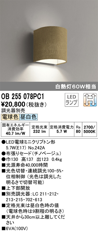ODELIC ¥ª¡¼¥Ç¥ê¥Ã¥¯ ¥Ö¥é¥±¥Ã¥È OB255078PC1