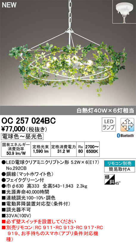 ODELIC ¥ª¡¼¥Ç¥ê¥Ã¥¯ ¥·¥ã¥ó¥Ç¥ê¥¢ OC257024BC