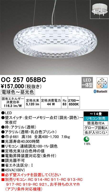 ODELIC ¥ª¡¼¥Ç¥ê¥Ã¥¯ ¥·¥ã¥ó¥Ç¥ê¥¢ OC257058BC