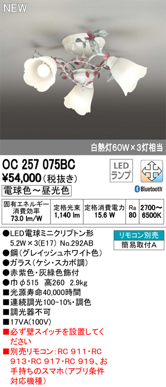ODELIC ¥ª¡¼¥Ç¥ê¥Ã¥¯ ¥·¥ã¥ó¥Ç¥ê¥¢ OC257075BC