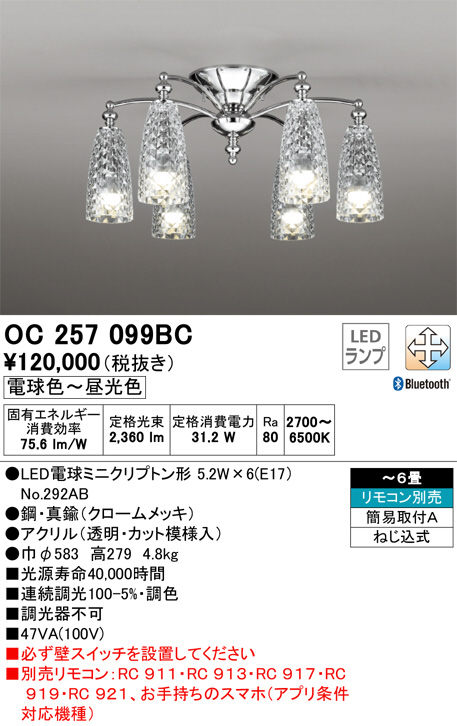 ODELIC ¥ª¡¼¥Ç¥ê¥Ã¥¯ ¥·¥ã¥ó¥Ç¥ê¥¢ OC257099BC