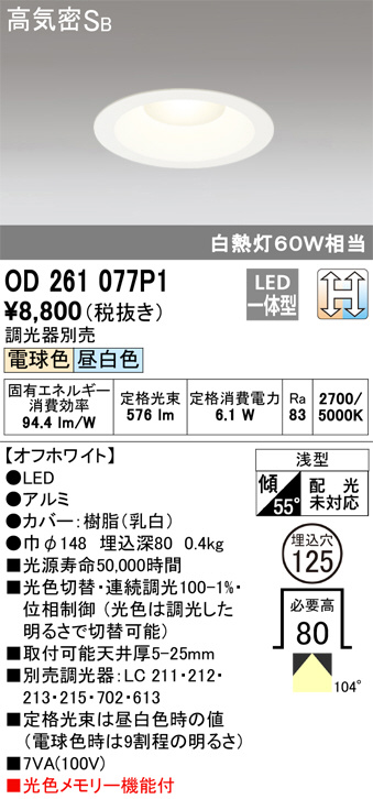 ODELIC ¥ª¡¼¥Ç¥ê¥Ã¥¯ ¥À¥¦¥ó¥é¥¤¥È OD261077P1