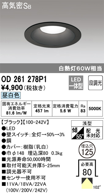 ODELIC ¥ª¡¼¥Ç¥ê¥Ã¥¯ ¥À¥¦¥ó¥é¥¤¥È OD261278P1