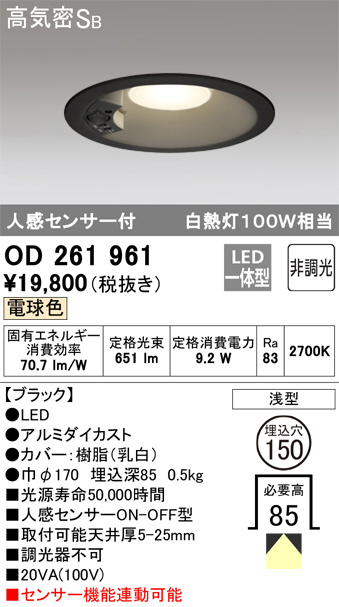 ODELIC ¥ª¡¼¥Ç¥ê¥Ã¥¯ ¥À¥¦¥ó¥é¥¤¥È OD261961