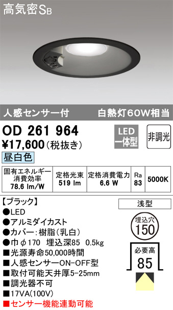 ODELIC ¥ª¡¼¥Ç¥ê¥Ã¥¯ ¥À¥¦¥ó¥é¥¤¥È OD261964