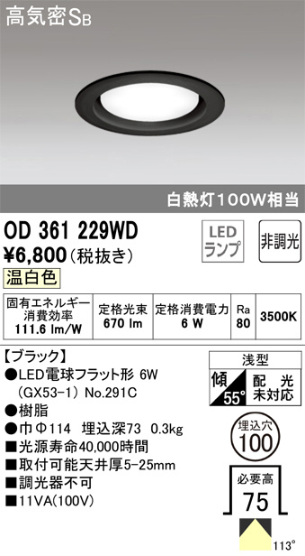 ODELIC ¥ª¡¼¥Ç¥ê¥Ã¥¯ ¥À¥¦¥ó¥é¥¤¥È OD361229WD