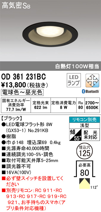 ODELIC ¥ª¡¼¥Ç¥ê¥Ã¥¯ ¥À¥¦¥ó¥é¥¤¥È OD361231BC