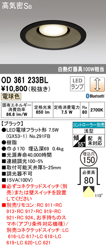 ODELIC ¥ª¡¼¥Ç¥ê¥Ã¥¯ ¥À¥¦¥ó¥é¥¤¥È OD361233BL
