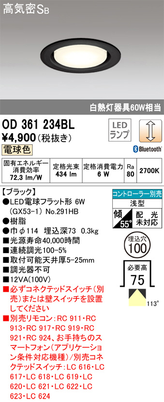 ODELIC ¥ª¡¼¥Ç¥ê¥Ã¥¯ ¥À¥¦¥ó¥é¥¤¥È OD361234BL