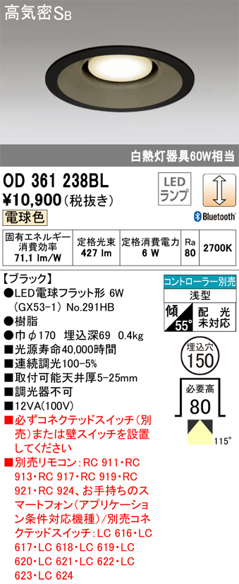 ODELIC ¥ª¡¼¥Ç¥ê¥Ã¥¯ ¥À¥¦¥ó¥é¥¤¥È OD361238BL