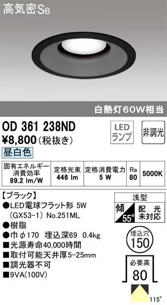 ODELIC ¥ª¡¼¥Ç¥ê¥Ã¥¯ ¥À¥¦¥ó¥é¥¤¥È OD361238ND