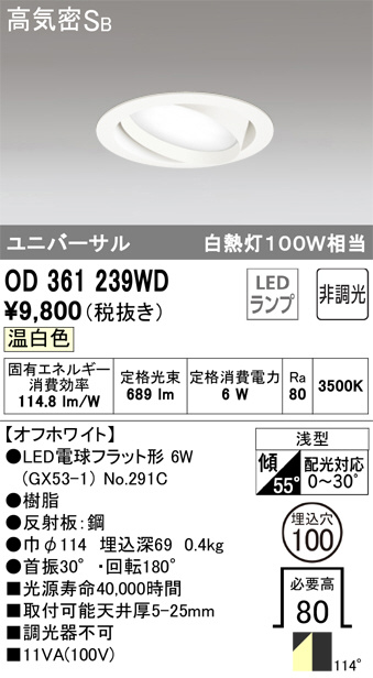 ODELIC ¥ª¡¼¥Ç¥ê¥Ã¥¯ ¥À¥¦¥ó¥é¥¤¥È OD361239WD