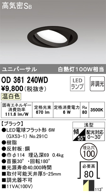 ODELIC ¥ª¡¼¥Ç¥ê¥Ã¥¯ ¥À¥¦¥ó¥é¥¤¥È OD361240WD