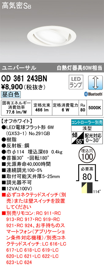 ODELIC ¥ª¡¼¥Ç¥ê¥Ã¥¯ ¥À¥¦¥ó¥é¥¤¥È OD361243BN