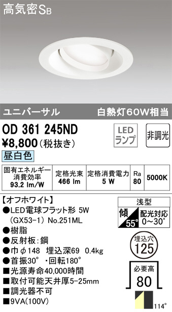 ODELIC ¥ª¡¼¥Ç¥ê¥Ã¥¯ ¥À¥¦¥ó¥é¥¤¥È OD361245ND