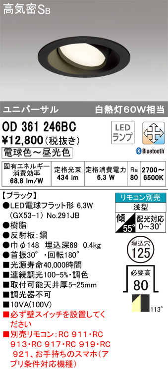 ODELIC ¥ª¡¼¥Ç¥ê¥Ã¥¯ ¥À¥¦¥ó¥é¥¤¥È OD361246BC