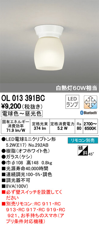 ODELIC ¥ª¡¼¥Ç¥ê¥Ã¥¯ ¾®·¿¥·¡¼¥ê¥ó¥°¥é¥¤¥È OL013391BC