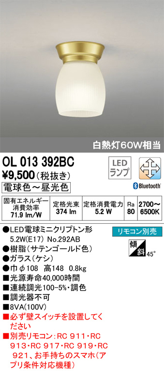 ODELIC ¥ª¡¼¥Ç¥ê¥Ã¥¯ ¾®·¿¥·¡¼¥ê¥ó¥°¥é¥¤¥È OL013392BC