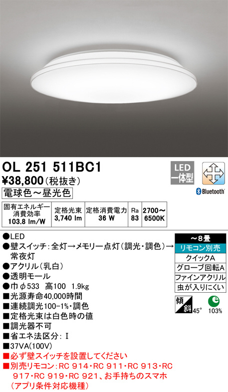 ODELIC ¥ª¡¼¥Ç¥ê¥Ã¥¯ ¥·¡¼¥ê¥ó¥°¥é¥¤¥È OL251511BC1