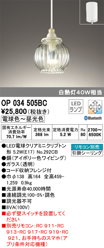 ODELIC ¥ª¡¼¥Ç¥ê¥Ã¥¯ ¥Ú¥ó¥À¥ó¥È¥é¥¤¥È OP034505BC