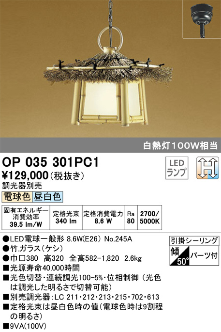 ODELIC ¥ª¡¼¥Ç¥ê¥Ã¥¯ ¥Ú¥ó¥À¥ó¥È¥é¥¤¥È OP035301PC1