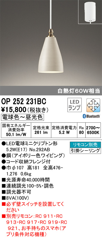 ODELIC ¥ª¡¼¥Ç¥ê¥Ã¥¯ ¥Ú¥ó¥À¥ó¥È¥é¥¤¥È OP252231BC