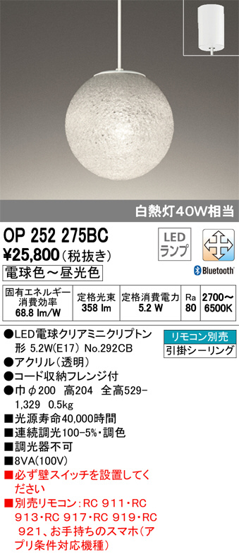 ODELIC ¥ª¡¼¥Ç¥ê¥Ã¥¯ ¥Ú¥ó¥À¥ó¥È¥é¥¤¥È OP252275BC
