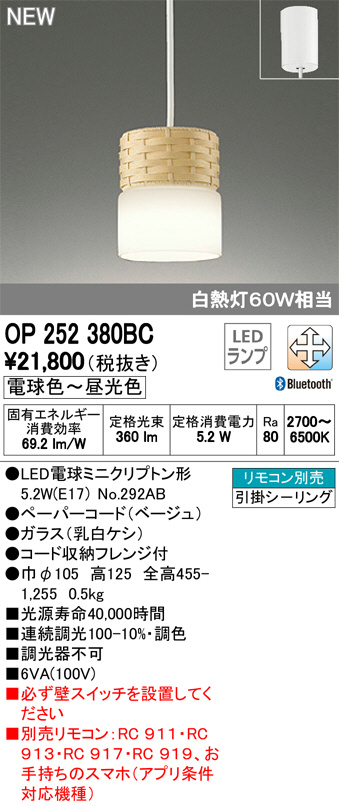 ODELIC ¥ª¡¼¥Ç¥ê¥Ã¥¯ ¥Ú¥ó¥À¥ó¥È¥é¥¤¥È OP252380BC