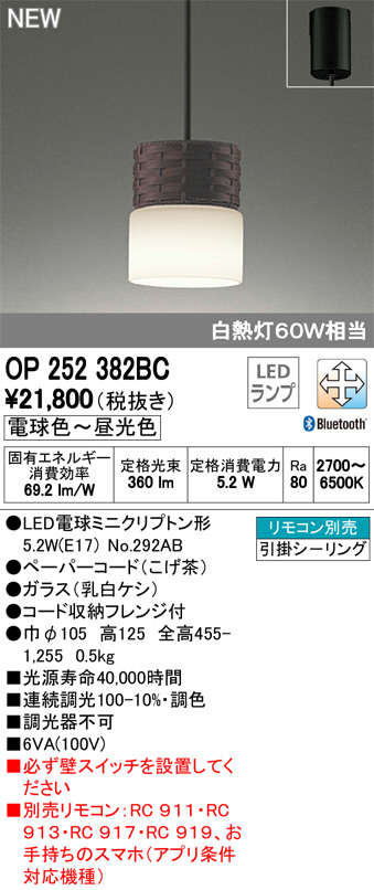 ODELIC ¥ª¡¼¥Ç¥ê¥Ã¥¯ ¥Ú¥ó¥À¥ó¥È¥é¥¤¥È OP252382BC