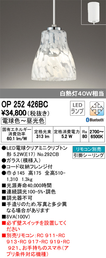 ODELIC ¥ª¡¼¥Ç¥ê¥Ã¥¯ ¥Ú¥ó¥À¥ó¥È¥é¥¤¥È OP252426BC