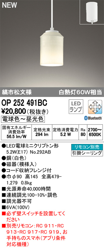 ODELIC ¥ª¡¼¥Ç¥ê¥Ã¥¯ ¥Ú¥ó¥À¥ó¥È¥é¥¤¥È OP252491BC
