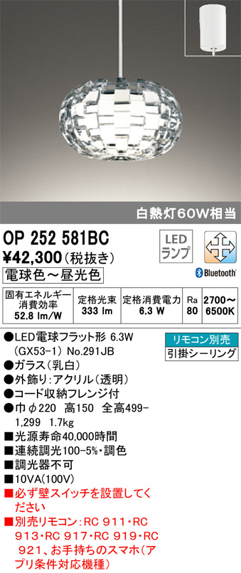 ODELIC ¥ª¡¼¥Ç¥ê¥Ã¥¯ ¥Ú¥ó¥À¥ó¥È¥é¥¤¥È OP252581BC