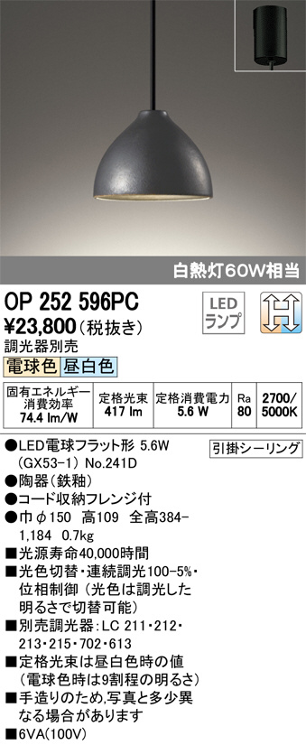 ODELIC ¥ª¡¼¥Ç¥ê¥Ã¥¯ ¥Ú¥ó¥À¥ó¥È¥é¥¤¥È OP252596PC