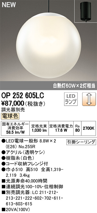ODELIC ¥ª¡¼¥Ç¥ê¥Ã¥¯ ¥Ú¥ó¥À¥ó¥È¥é¥¤¥È OP252605LC
