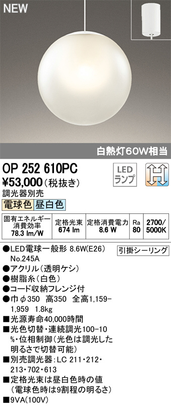 ODELIC ¥ª¡¼¥Ç¥ê¥Ã¥¯ ¥Ú¥ó¥À¥ó¥È¥é¥¤¥È OP252610PC
