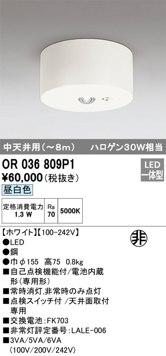 ODELIC ¥ª¡¼¥Ç¥ê¥Ã¥¯ Èó¾ïÅô OR036809P1