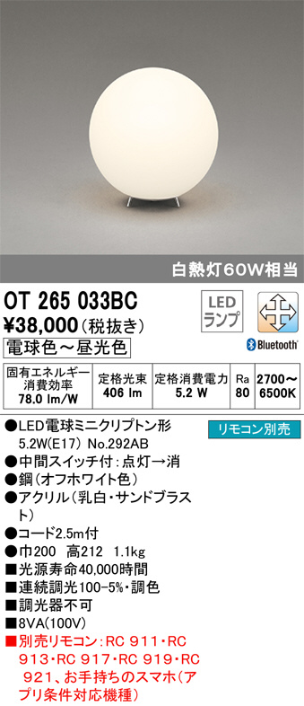 ODELIC ¥ª¡¼¥Ç¥ê¥Ã¥¯ ¥¹¥¿¥ó¥É OT265033BC