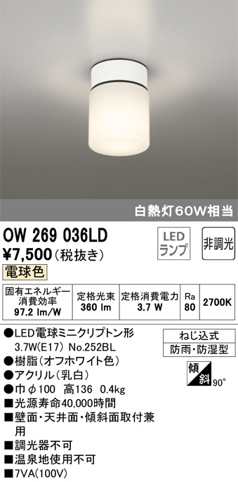 ODELIC ¥ª¡¼¥Ç¥ê¥Ã¥¯ ¥Ð¥¹¥ë¡¼¥à¥é¥¤¥È OW269036LD