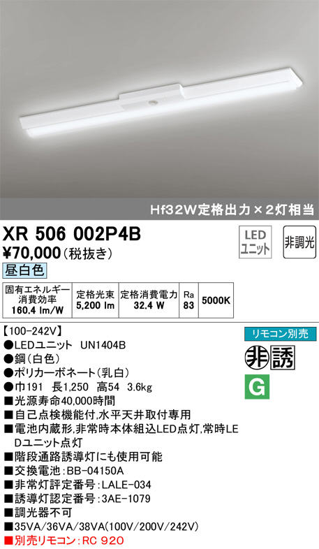 ODELIC ¥ª¡¼¥Ç¥ê¥Ã¥¯ Èó¾ïÅô¡¦Í¶Æ³Åô XR506002P4B